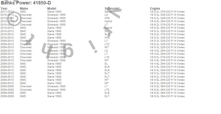 Below is an abreviated list of applications for the Banks Ram-Air Intake System.