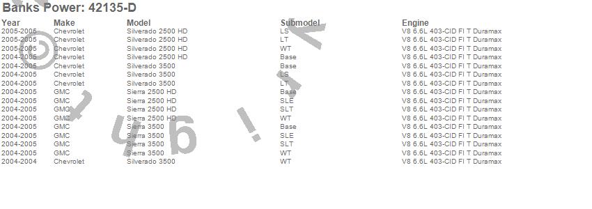 Below is an abreviated list of applications for the Banks Ram-Air Intake System.