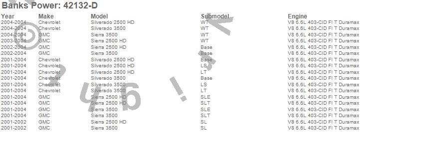 Below is an abreviated list of applications for the Banks Ram-Air Intake System.