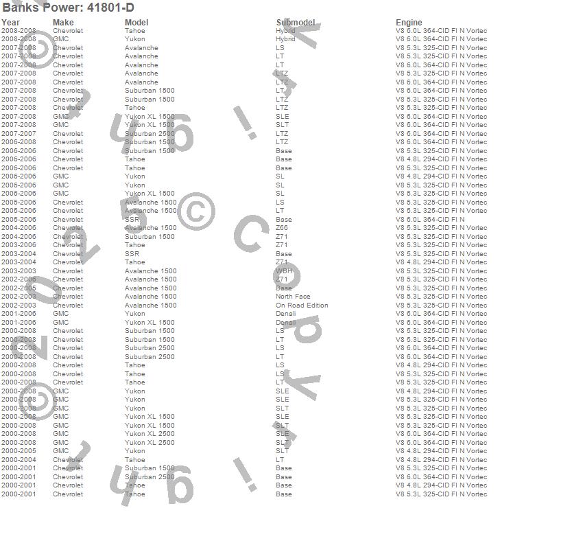 Below is an abreviated list of applications for the Banks Ram-Air Intake System.