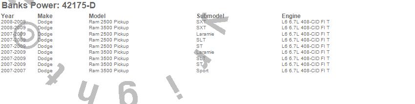 Below is an abreviated list of applications for the Banks Ram-Air Intake System.