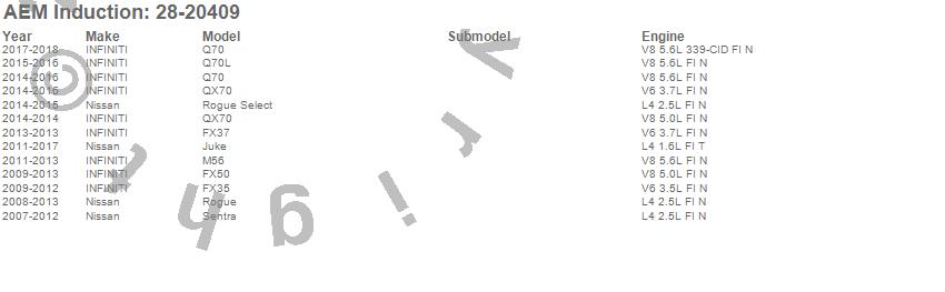 Below is an abreviated list of applications for the Dryflow Air Filter.