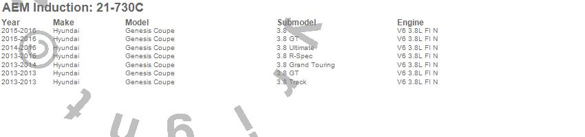 Below is an abreviated list of applications for the Cold Air Induction System.