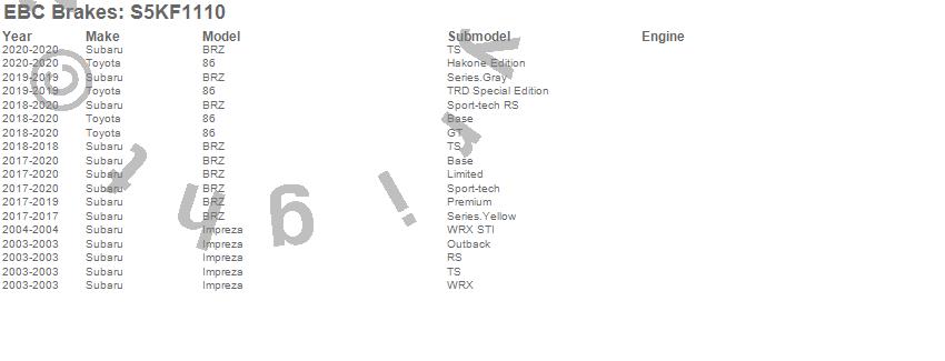Below is an abreviated list of applications for the S5 Kits yellowstuff And GD Rotors.