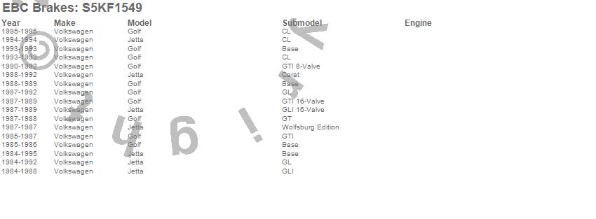 Below is an abreviated list of applications for the S5 Kits yellowstuff And GD Rotors.