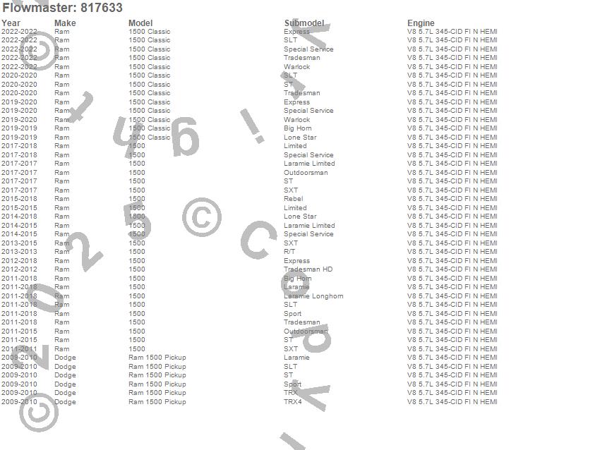 Below is an abreviated list of applications for the Outlaw Series Cat Back Exhaust System.