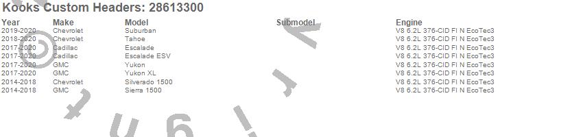 Below is an abreviated list of applications for the GREEN Catted Y-Pipe.