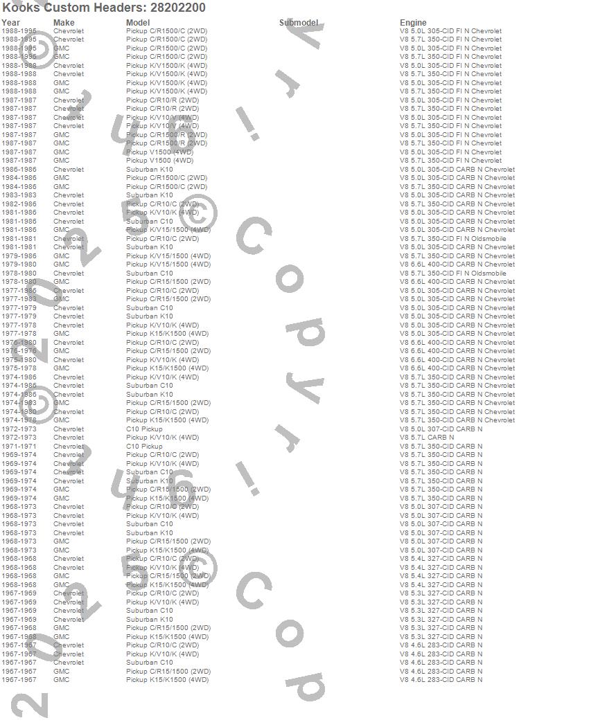Below is an abreviated list of applications for the Stainless Steel Headers.