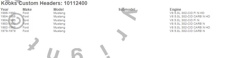 Kooks Custom Headers Stainless Steel Headers # 10112400 - ForUse w/302-8.2DeckSmallBlockFordSwap w/EdelbrockVictorJr/AirFlowResearch165And185/TrickFlowTFS-TwistedWedge/SVOGT40/BrodixSt/5.0/Dart170And195Cyl.Head