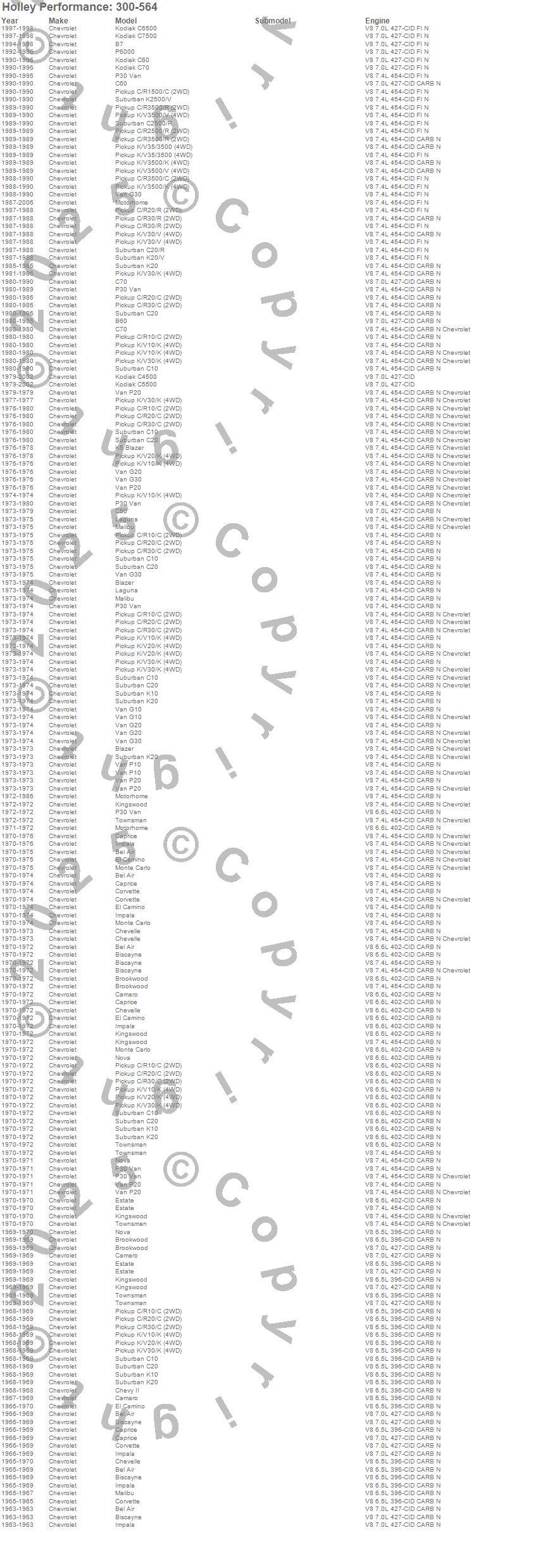 B60, B7, Bel Air, Biscayne, Blazer, Blazer K5, Brookwood, C10 Pickup, C10 Suburban, C1500 Pickup, C20 Pickup, C20 Suburban, C30 Pickup, C3500 Pickup, C4500 Kodiak, C50, C5500 Kodiak, C60, C60 Kodiak, C6500 Kodiak more...