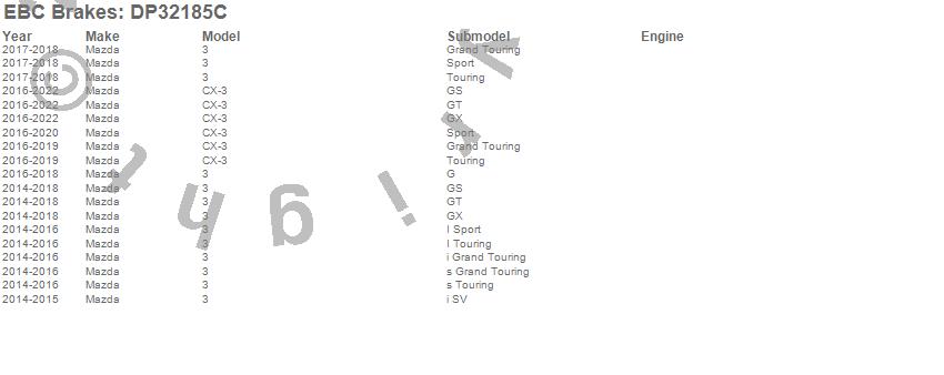Below is an abreviated list of applications for the EBC Redstuff Ceramic Low Dust Brake Pads.