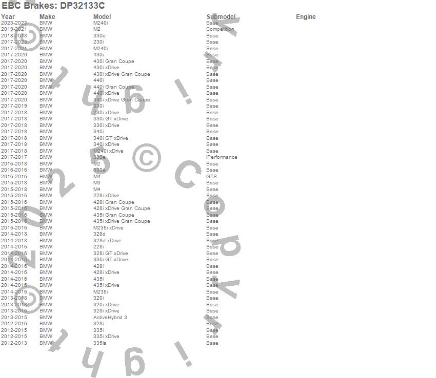 Below is an abreviated list of applications for the EBC Redstuff Ceramic Low Dust Brake Pads.