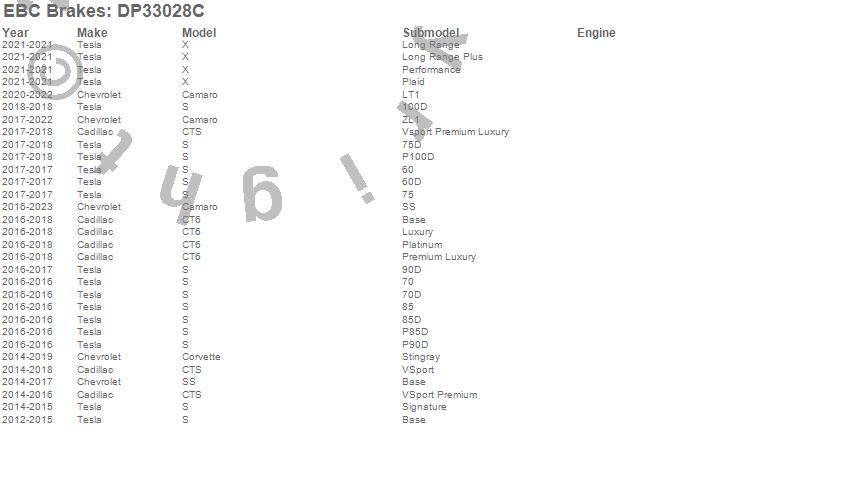 Below is an abreviated list of applications for the EBC Redstuff Ceramic Low Dust Brake Pads.