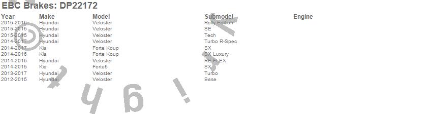 Below is an abreviated list of applications for the EBC Greenstuff 2000 Series Sport Brake Pads.