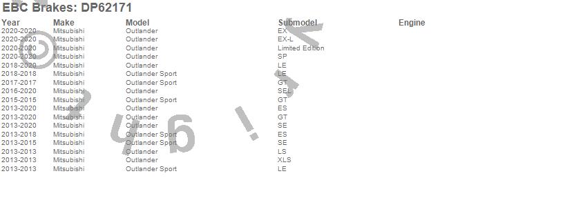 Below is an abreviated list of applications for the EBC 6000 Series Greenstuff Truck/SUV Brakes Disc Pads.