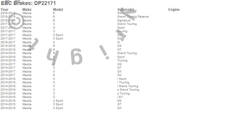 Below is an abreviated list of applications for the EBC Greenstuff 2000 Series Sport Brake Pads.