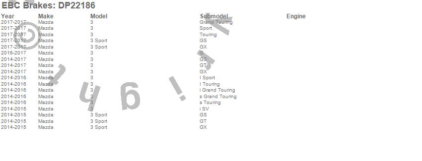 Below is an abreviated list of applications for the EBC Greenstuff 2000 Series Sport Brake Pads.