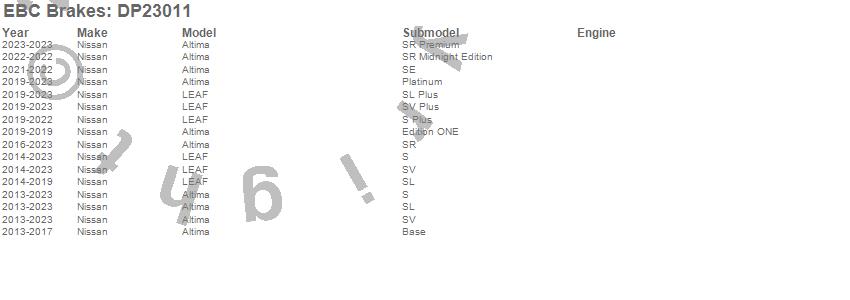 Below is an abreviated list of applications for the EBC Greenstuff 2000 Series Sport Brake Pads.