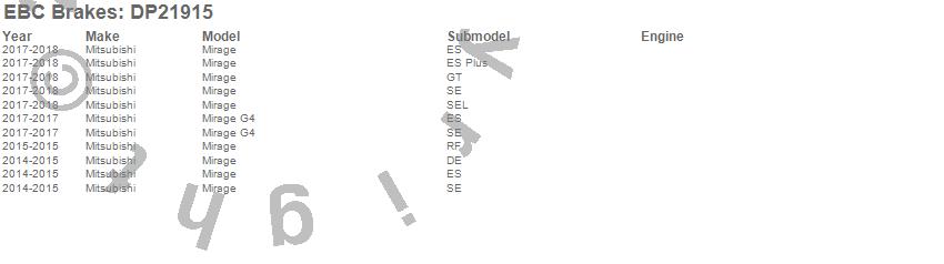 Below is an abreviated list of applications for the EBC Greenstuff 2000 Series Sport Brake Pads.