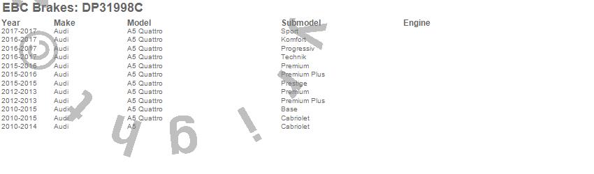 Below is an abreviated list of applications for the EBC Redstuff Ceramic Low Dust Brake Pads.