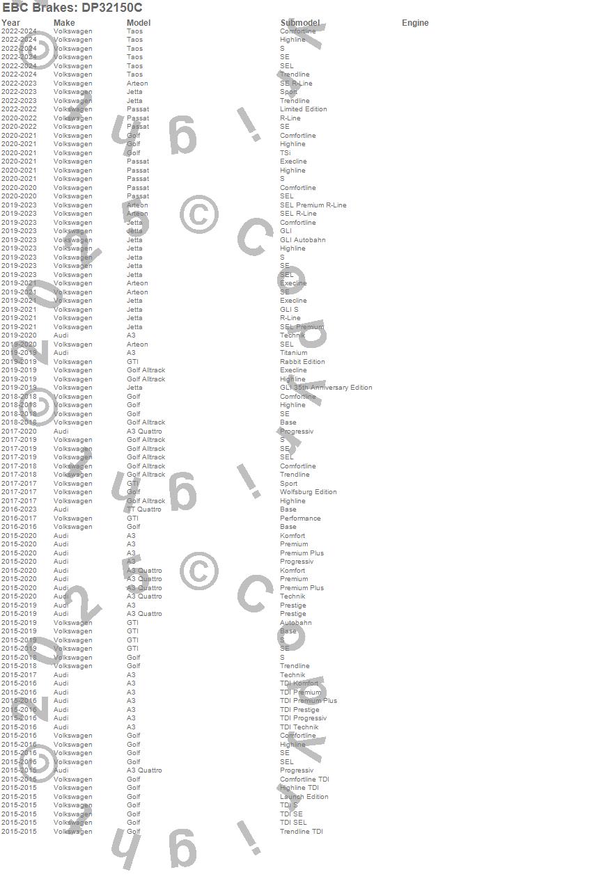 Below is an abreviated list of applications for the EBC Redstuff Ceramic Low Dust Brake Pads.