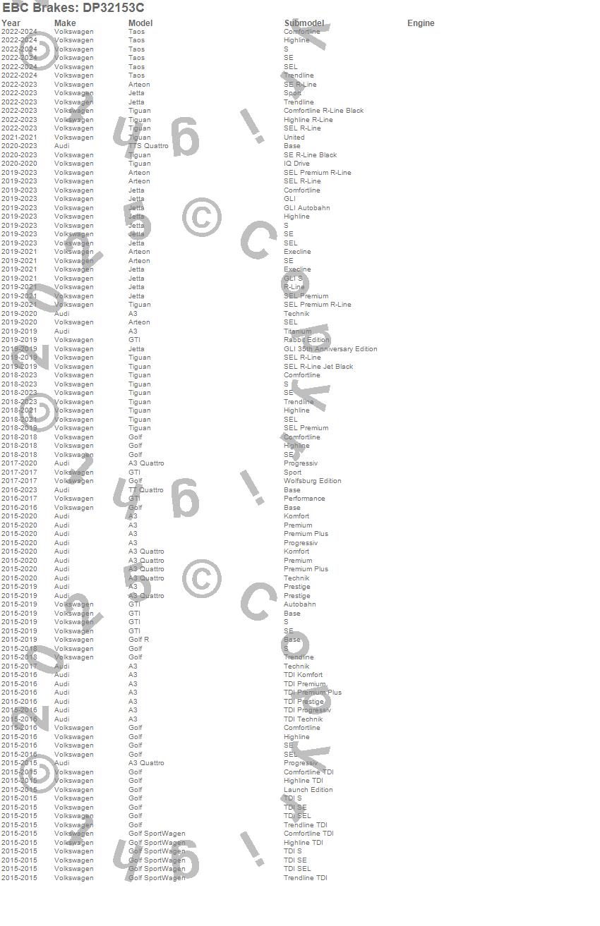 Below is an abreviated list of applications for the EBC Redstuff Ceramic Low Dust Brake Pads.