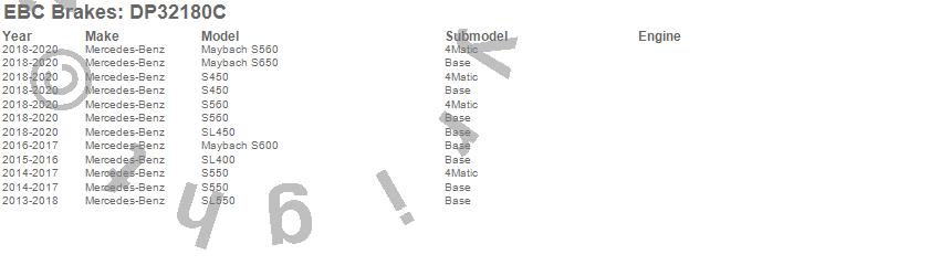 Below is an abreviated list of applications for the EBC Redstuff Ceramic Low Dust Brake Pads.