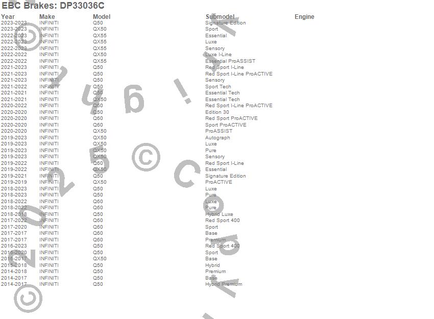 Below is an abreviated list of applications for the EBC Redstuff Ceramic Low Dust Brake Pads.