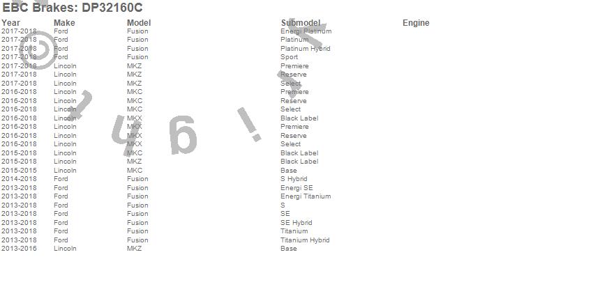 Below is an abreviated list of applications for the EBC Redstuff Ceramic Low Dust Brake Pads.