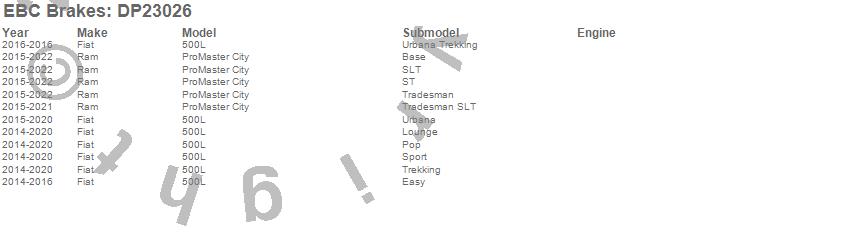 Below is an abreviated list of applications for the EBC Greenstuff 2000 Series Sport Brake Pads.