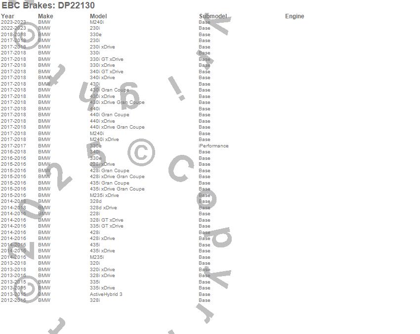 Below is an abreviated list of applications for the EBC Greenstuff 2000 Series Sport Brake Pads.