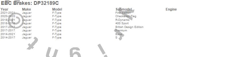 Below is an abreviated list of applications for the EBC Redstuff Ceramic Low Dust Brake Pads.