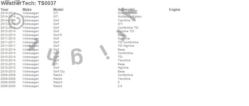 Below is an abreviated list of applications for the WeatherTech TechShade. Golf, Golf City, GTI, Rabbit, Volkswagen, 2014, 2013, 2012, 2011, 2010, 2009, 2008, 2007, 2006 more…