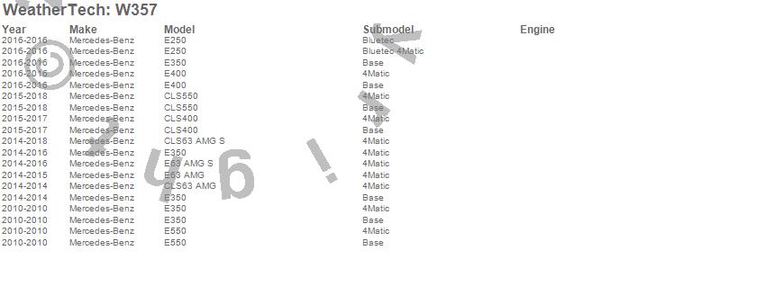 Below is an abreviated list of applications for the All Weather Floor Mats.