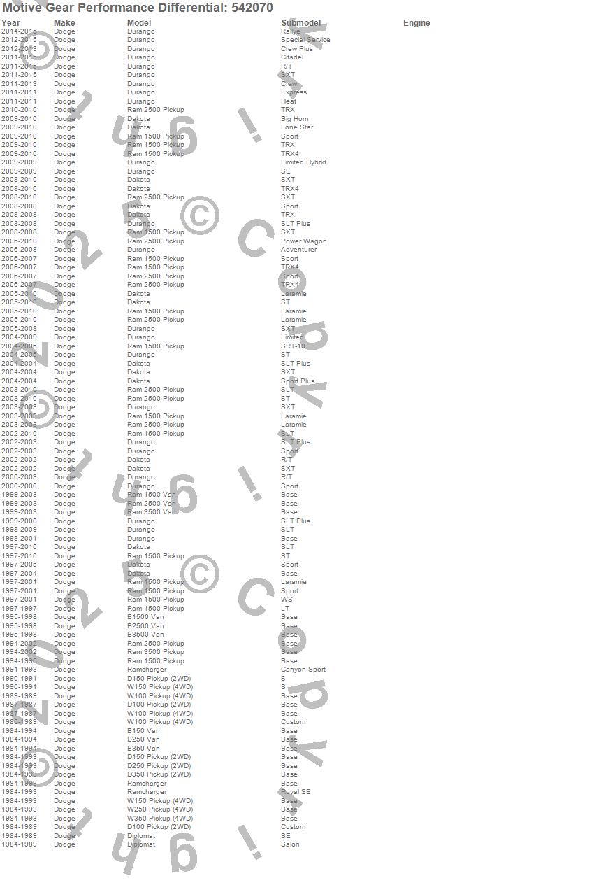 B150, B150 Van, B1500, B250, B250 Van, B2500, B350, B350 Van, B3500, D100 Pickup, D150 Pickup, D250 Pickup, D350 Pickup, Dakota, Diplomat, Durango, Ram 1500, Ram 1500 Van, Ram 2500, Ram 2500 Van more…