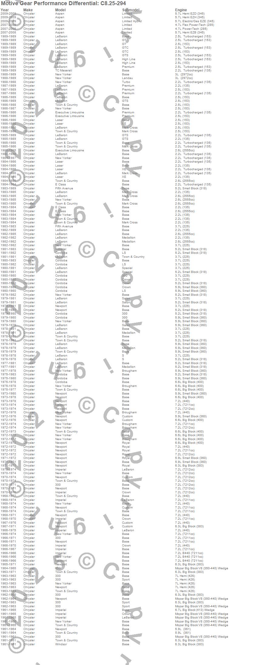 300, Aspen, Cordoba, E Class, Executive Limousine, Fifth Avenue, Imperial, Laser, LeBaron, New Yorker, Newport, TC Maserati, Town & Country, Windsor, Chrysler, 2009, 2008, 2007, 1989, 1988 more…