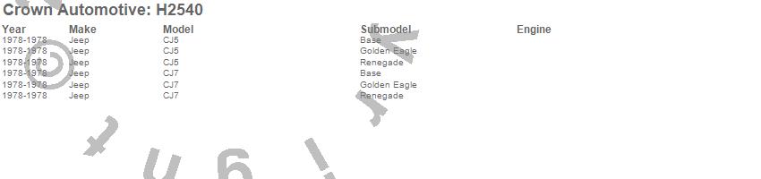 Crown Automotive is the premier manufacturer and distributor of quality replacement parts for Jeep® CJ™, Wrangler™, Cherokee™, Grand Cherokee™, Liberty™, and Commander™."From humble beginnings in 1963 in a small Boston storefront, Crown Automotive has consistently maintained its commitment to offering only quality parts and exceptional service. Today, with warehouses in Massachusetts, Georgia, Nevada, Spain, and the Czech Republic, totaling over 160,000 square feet, Crown Automotive continues to be the leader in quality replacement parts for Jeep® vehicles. With over 8,000 different parts in stock for Jeep® vehicles from 1942 on up, Crown has the largest stock of replacement parts for Jeep® vehicles, including factory-discontinued parts. In fact, many of the older Jeeps are still on (and off) the road thanks to Crown parts. The Crown line consists of axle, body, brake, clutch, cooling, driveline, electrical, engine, exhaust, fuel, steering, suspension, transmission and transfer case components. Crown Automotive also offers an exclusive line of component kits and accessory products. Because we know that Jeeps are driven harder than most other vehicles, we emphasize offering only quality parts. In fact, we test parts on Jeeps before distributing them to our dealers to insure that they meet our standards for quality. Crown also supports its entire line with a 12 month/12,000 mile warranty to insure our dealers and their customers of our commitment to offering quality parts. We know from experience that Jeep® owners would rather pay a little more for a good quality part that's backed by a strong guarantee. But we know that price is important as well. So, not only will you find Crown parts to be of exceptional quality, but you'll find them at a great price too.