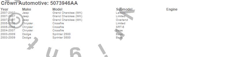 Crossfire, Grand Cherokee (WK), Sprinter 2500, Sprinter 3500, Chrysler, Dodge, Jeep, 2009, 2008, 2007, 2006, 2005, 2004, 2003 more…