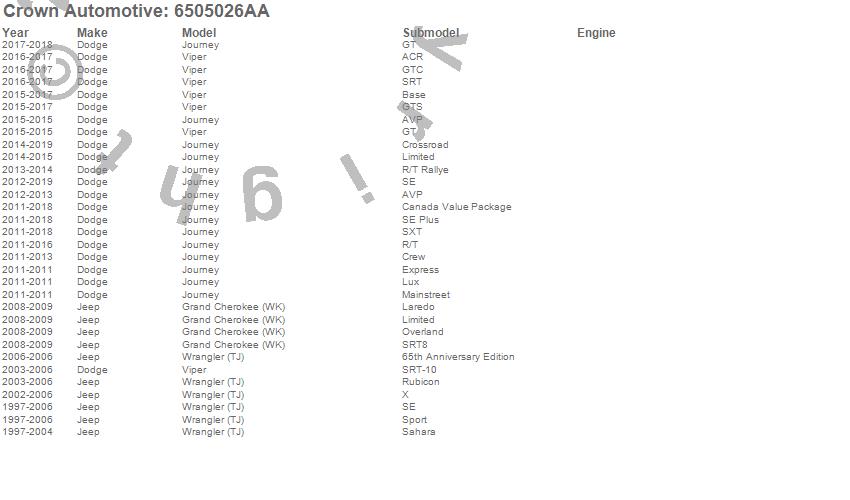 Grand Cherokee (WK), Journey, Viper, Wrangler (TJ), Dodge, Jeep, 2015, 2014, 2013, 2012, 2011, 2009, 2008, 2006, 2005, 2004, 2003, 2002, 2001, 2000 more…