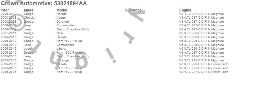 Aspen, Commander, Dakota, Durango, Grand Cherokee (WK), Liberty, Nitro, Ram 1500, Chrysler, Dodge, Jeep, 2012, 2011, 2010, 2009, 2008, 2007, 2006, 2005 more…