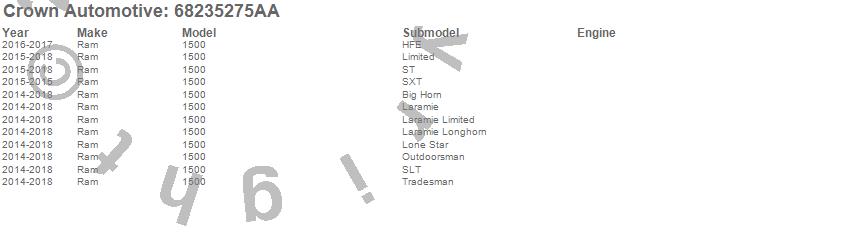 Crown Automotive Fuel Filter 68235275AA Features: