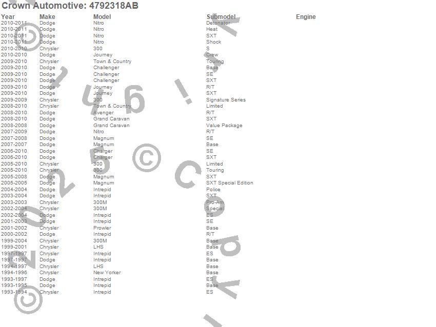 300, 300M, Avenger, Challenger, Charger, Grand Caravan, Intrepid, Journey, LHS, Magnum, New Yorker, Nitro, Prowler, Town & Country, Chrysler, Dodge, 2011, 2010, 2009, 2008 more…