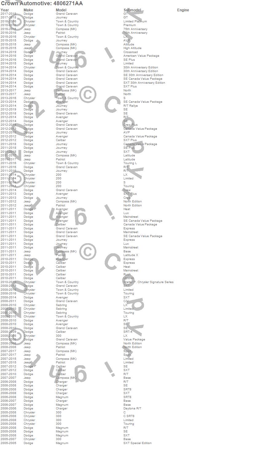 200, 300, Avenger, Caliber, Caravan, Charger, Compass, Grand Caravan, Journey, Magnum, Patriot, Sebring, Town & Country, Chrysler, Dodge, Jeep, 2015, 2014, 2013, 2012 more…