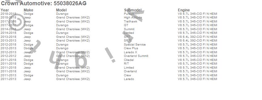 Durango, Grand Cherokee (WK2), Dodge, Jeep, 2015, 2014, 2013, 2012, 2011 more…