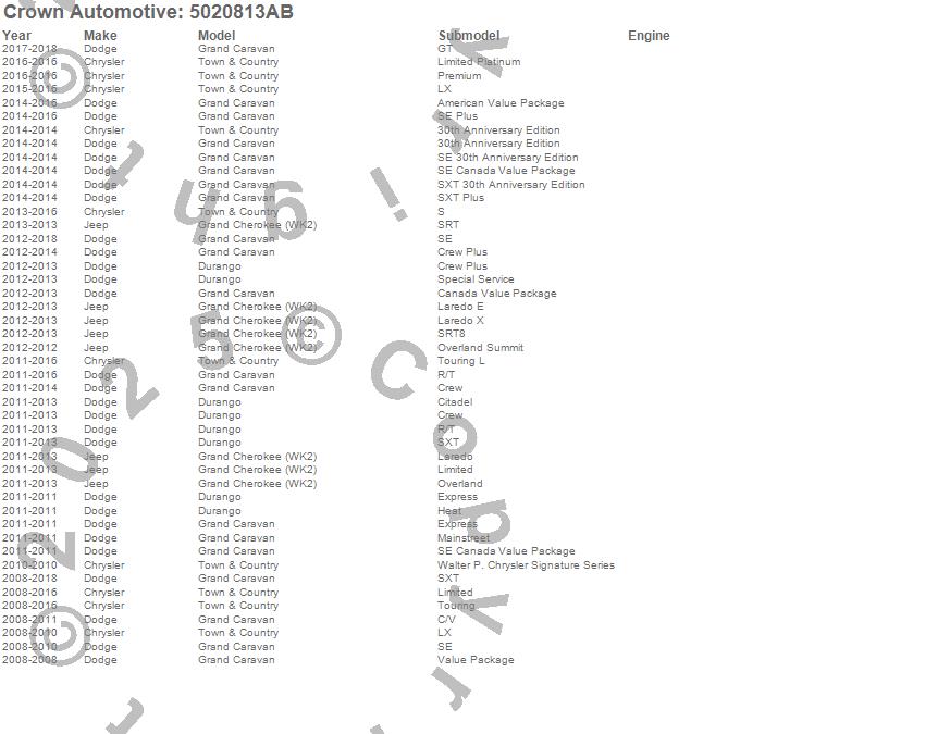 Caravan, Durango, Grand Caravan, Grand Cherokee (WK2), Town & Country, Chrysler, Dodge, Jeep, 2015, 2014, 2013, 2012, 2011, 2010, 2009, 2008 more…