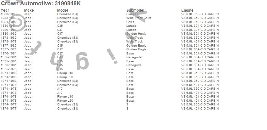 Cherokee (SJ), CJ5, CJ6, CJ7, J10, J20, Jeep, 1988, 1987, 1986, 1985, 1984, 1983, 1982, 1981, 1980, 1979, 1978, 1977, 1976 more…