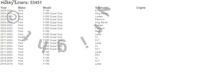 Below is an abreviated list of applications for the X-act Contour Floor Liner.