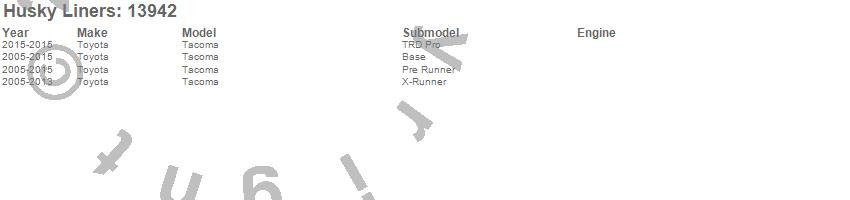 Below is an abreviated list of applications for the WeatherBeater Floor Liner.