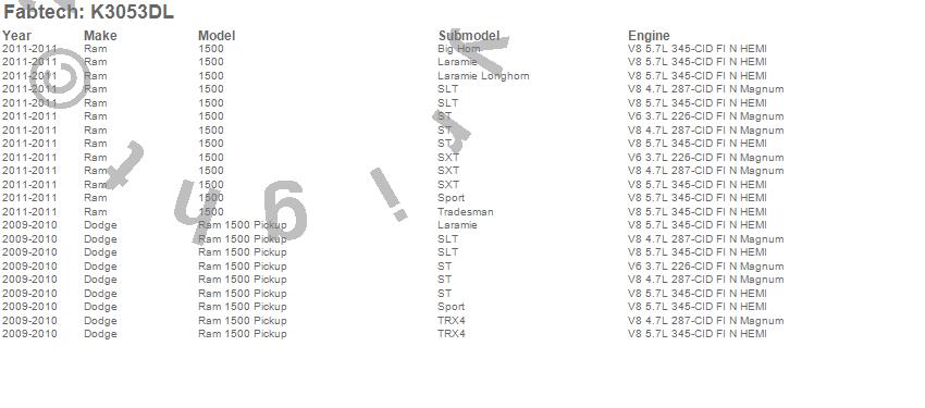 Fabtech Basic System K3053DL Features: