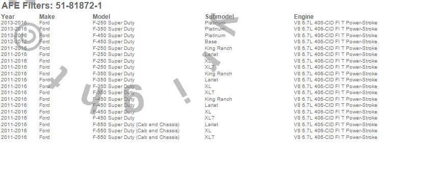 Below is an abreviated list of applications for the MagnumFORCE Pro Dry S Stage-2 Intake System.